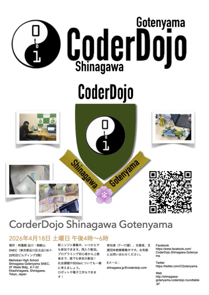 CoderDojo 品川御殿山は、4月から装いも新たにスタートします。 プログラミングは、勉強ではなく「遊び」であり「魔法」です。